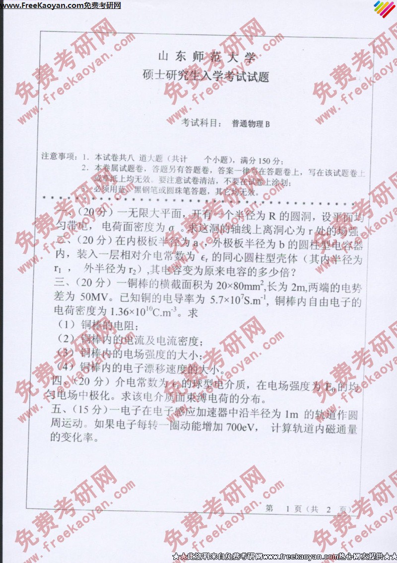专业课考研经验 本站小编 FreeKaoyan 2018-01-23山东师范大学2007年考研真题-普通物理A