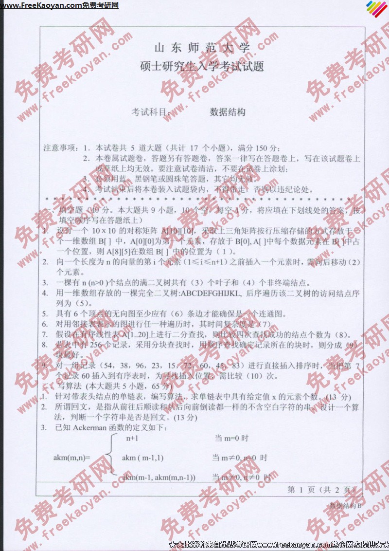 山东师范大学2007年考研真题-数据结构