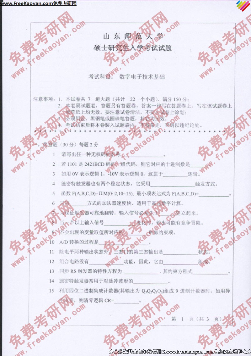 相关话题/考研真题 山东师范大学 电子技术基础 数字