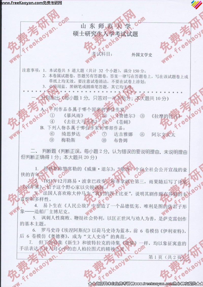 相关话题/山东师范大学 考研真题 外国文学史