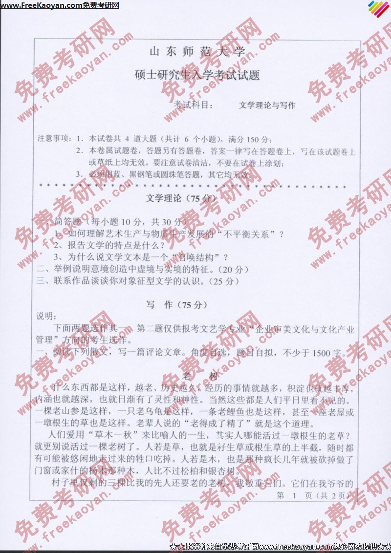 相关话题/考研真题 山东师范大学 写作 文学理论