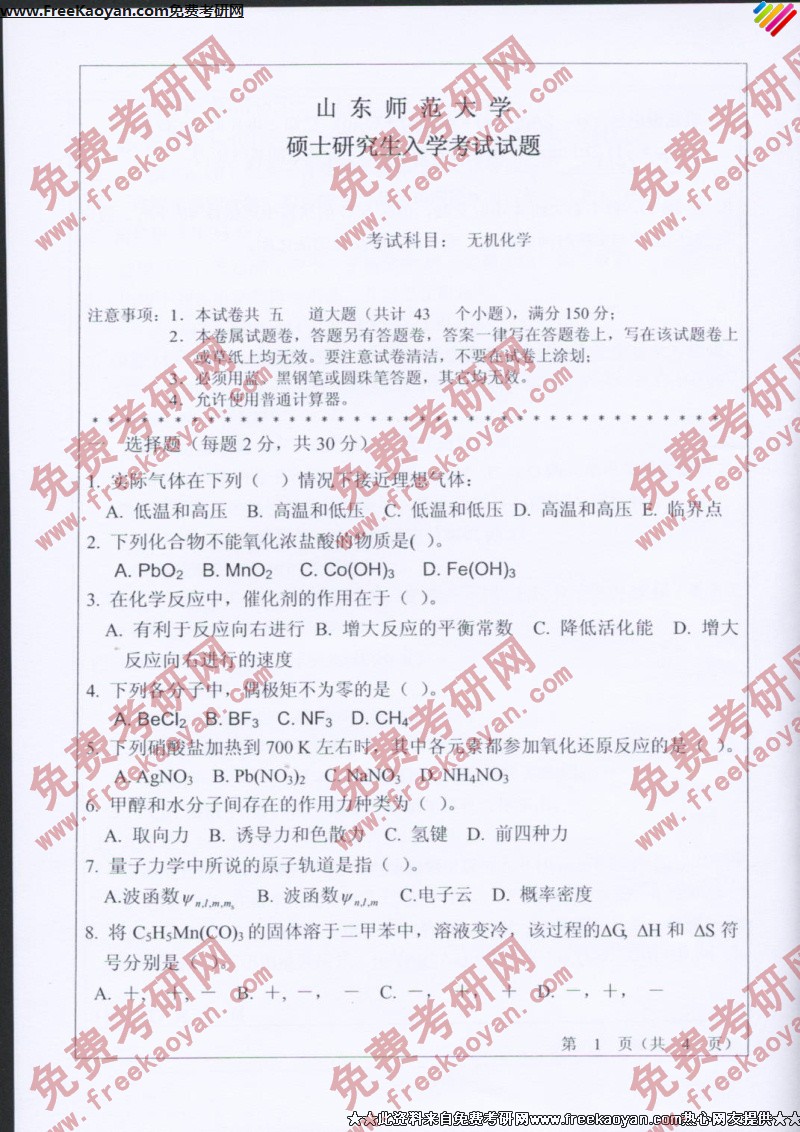 专业课考研经验 本站小编 FreeKaoyan 2018-01-23山东师范大学2007年考研真题-普通物理A