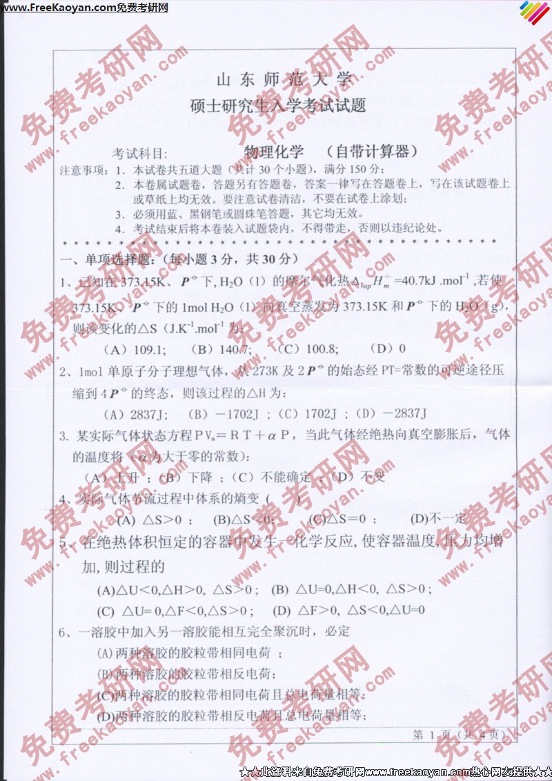 专业课考研经验 本站小编 FreeKaoyan 2018-01-23山东师范大学2007年考研真题-普通物理A
