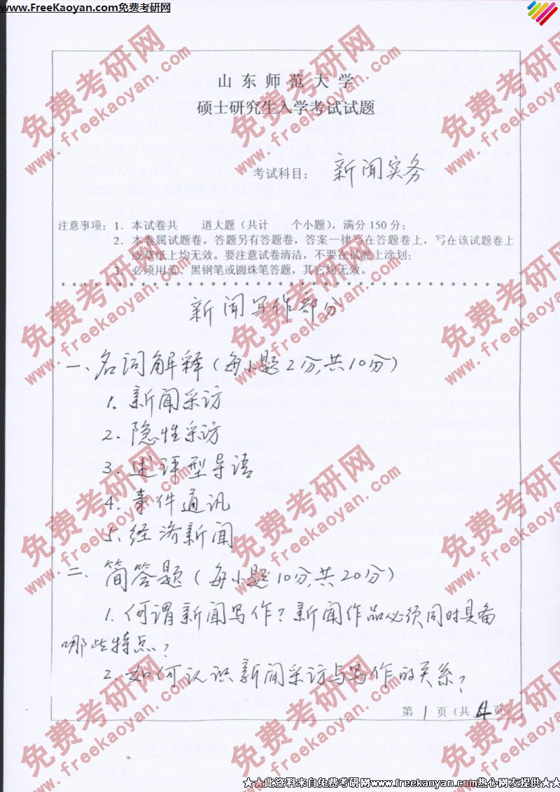 专业课考研经验 本站小编 FreeKaoyan 2018-01-23山东师范大学2007年考研真题-数字电视技术与写作