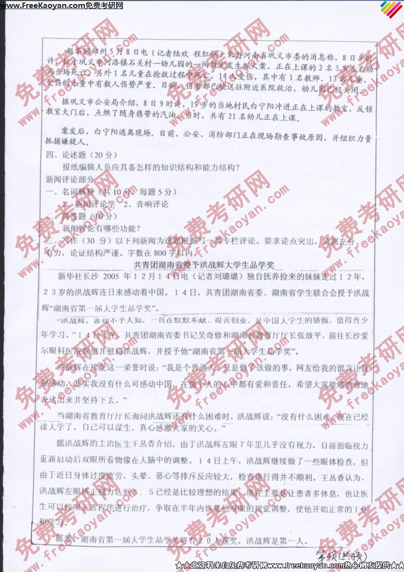 专业课考研经验 本站小编 FreeKaoyan 2018-01-23山东师范大学2007年考研真题-数字电视技术与写作