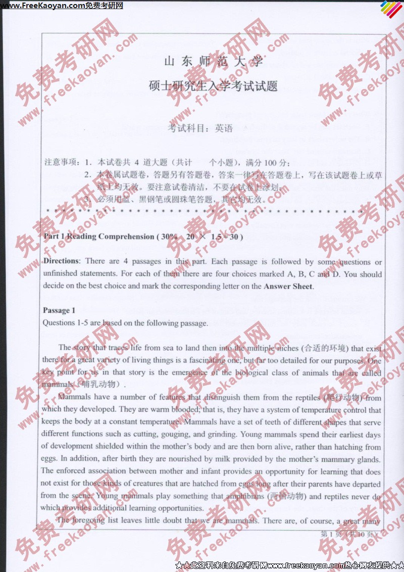 专业课考研经验 本站小编 FreeKaoyan 2018-01-23山东师范大学2007年考研真题-数字电视技术与写作
