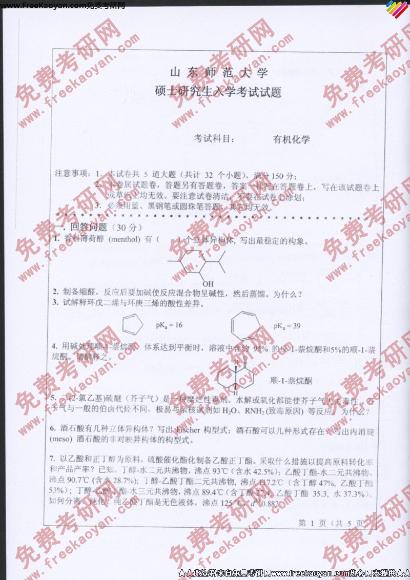 相关话题/山东师范大学 考研真题 有机化学