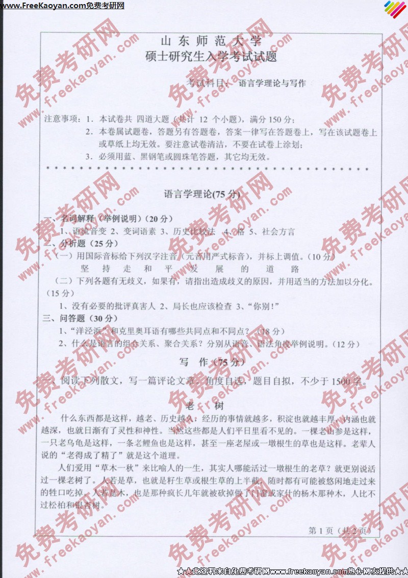 专业课考研经验 本站小编 FreeKaoyan 2018-01-23山东师范大学2007年考研真题-英语