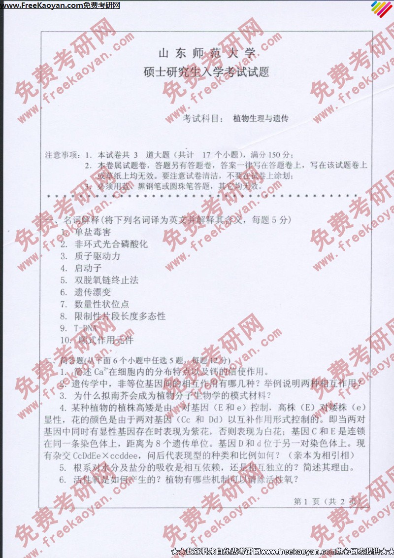 相关话题/考研真题 山东师范大学 植物 遗传 生理