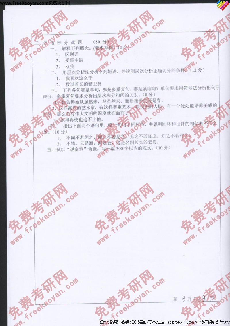 专业课考研经验 本站小编 FreeKaoyan 2018-01-23山东师范大学2007年考研真题-语言学理论与写作