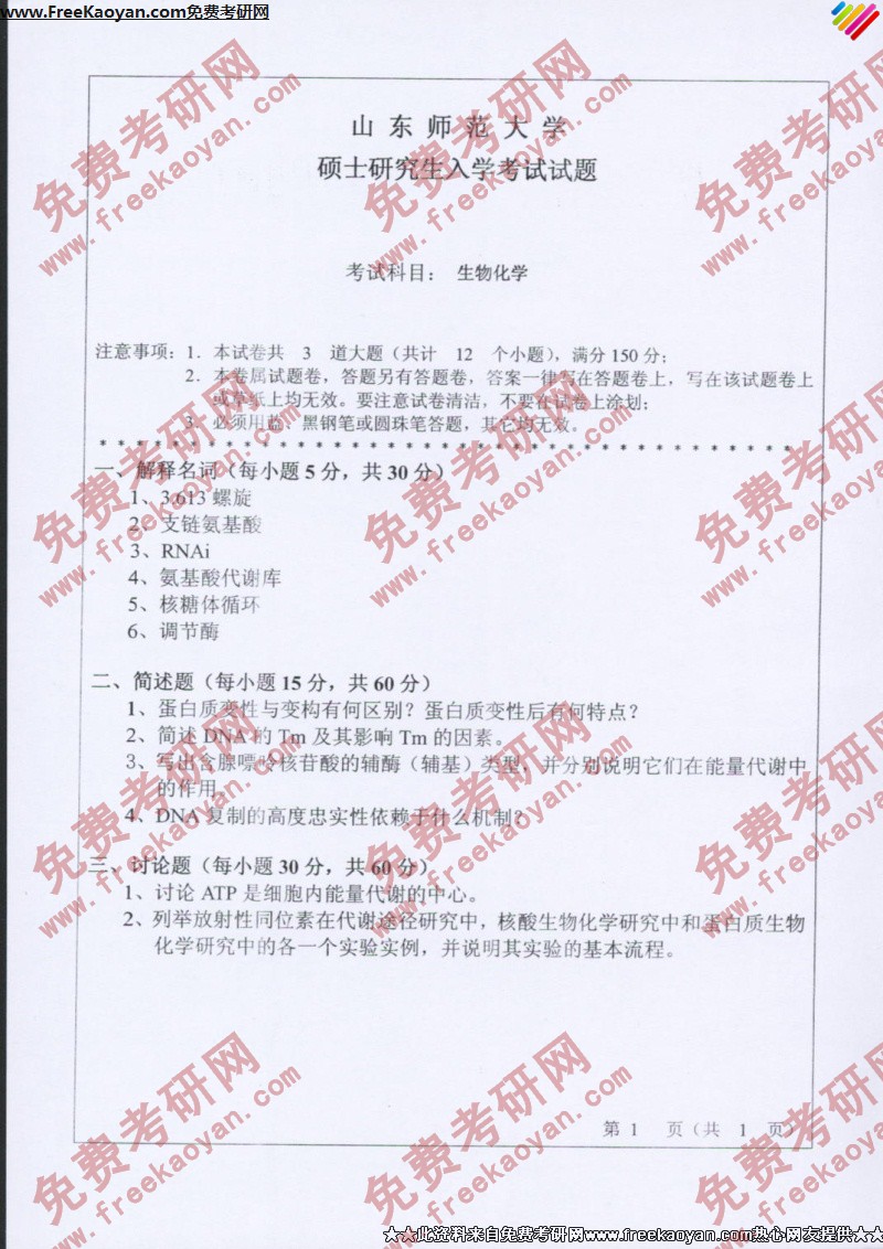 专业课考研经验 本站小编 FreeKaoyan 2018-01-23山东师范大学2007年考研真题-分子生物学