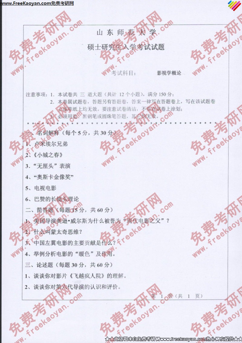 专业课考研经验 本站小编 FreeKaoyan 2018-01-23山东师范大学2007年考研真题-艺术学与中外美术史
