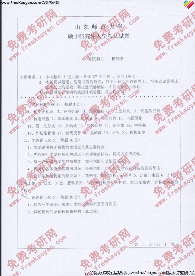 专业课考研经验 本站小编 FreeKaoyan 2018-01-23山东师范大学2007年考研真题-人文地理学