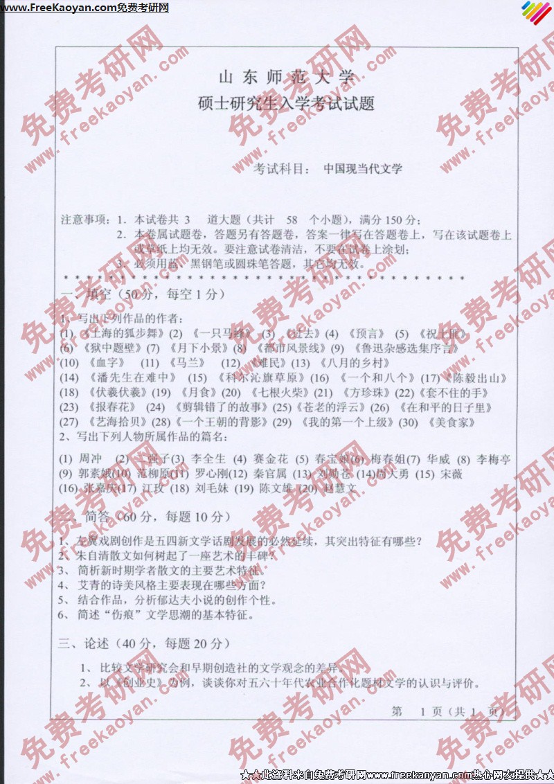 相关话题/山东师范大学 考研真题 中国现当代文学