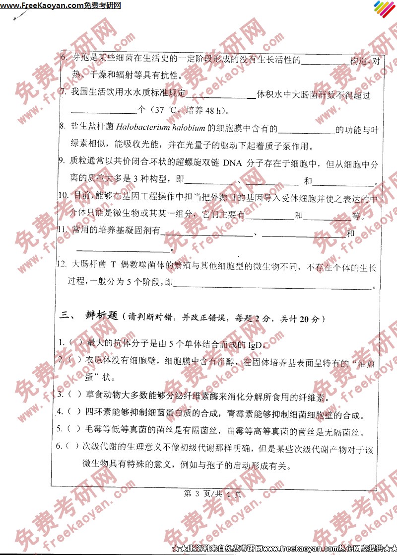 专业课考研经验 本站小编 FreeKaoyan 2018-01-23浙江工商大学2007年考研专业课试卷微生物学上传的附件b42b3e712adb78689c637e5109c13b10.rar(80.70KB) ...