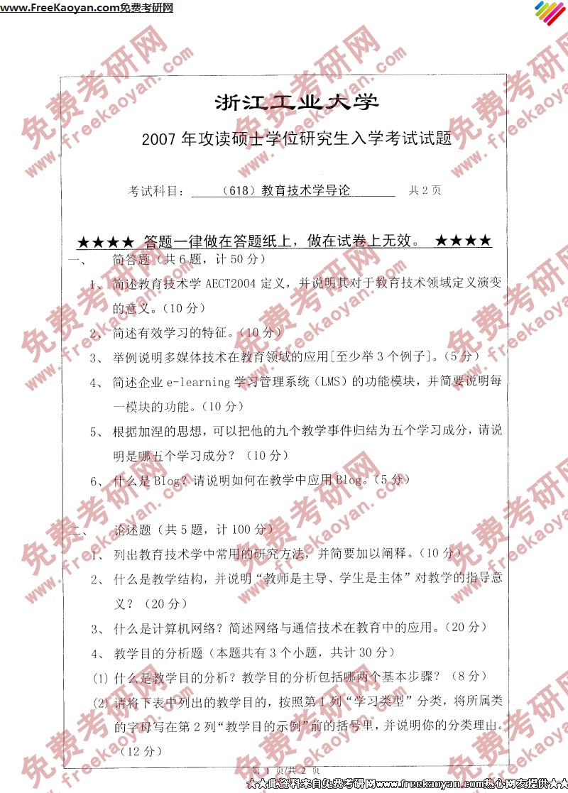 专业课考研经验 本站小编 FreeKaoyan 2018-01-23浙江工业大学2007年考研真题-教育学原理