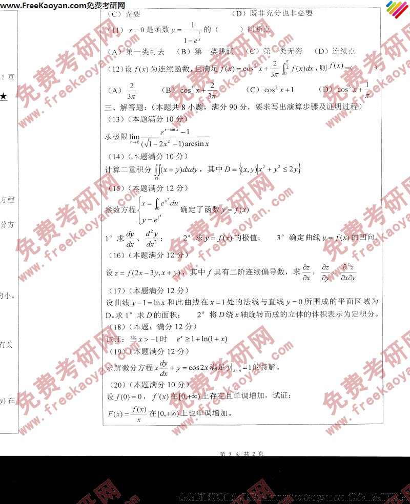 专业课考研经验 本站小编 FreeKaoyan 2018-01-23浙江工业大学2007年考研真题-数学分析