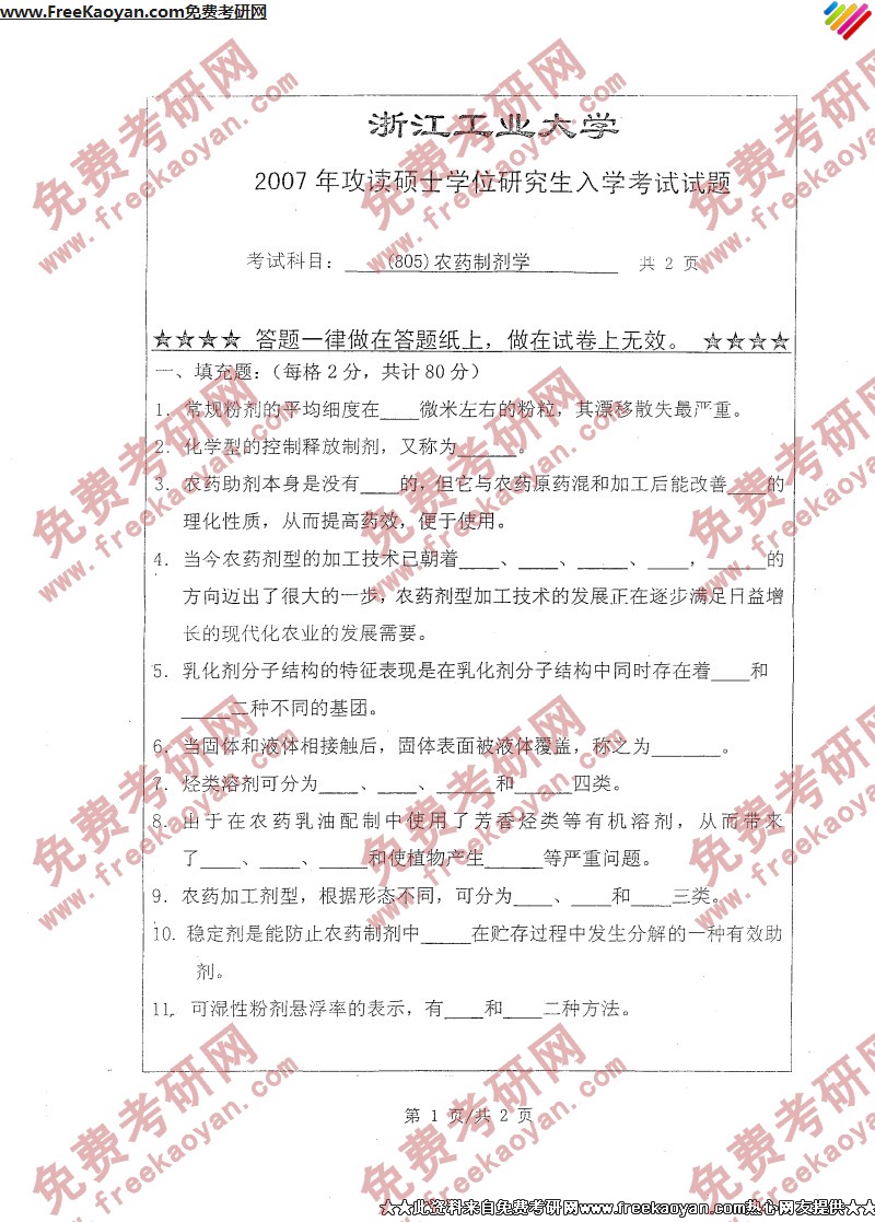 相关话题/考研真题 浙江工业大学 制剂 农药