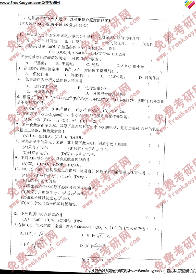 专业课考研经验 本站小编 FreeKaoyan 2018-01-23浙江工业大学2007年考研真题-分析化学
