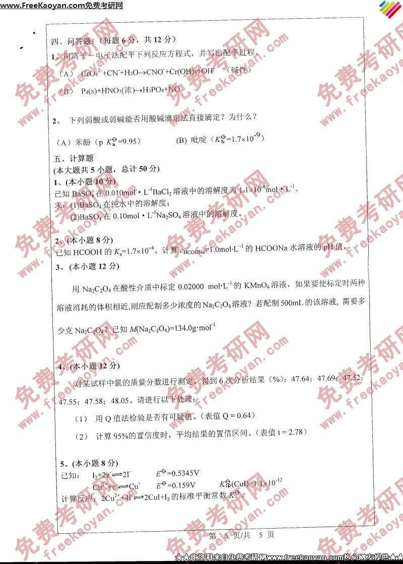浙江工业大学2007年考研真题-无机与分析化学(5)