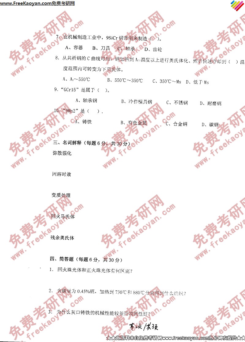 专业课考研经验 本站小编 FreeKaoyan 2018-01-23浙江工业大学2007年考研真题-物理化学