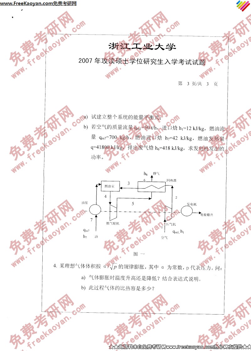 专业课考研经验 本站小编 FreeKaoyan 2018-01-23浙江工业大学2007年考研真题-物理化学