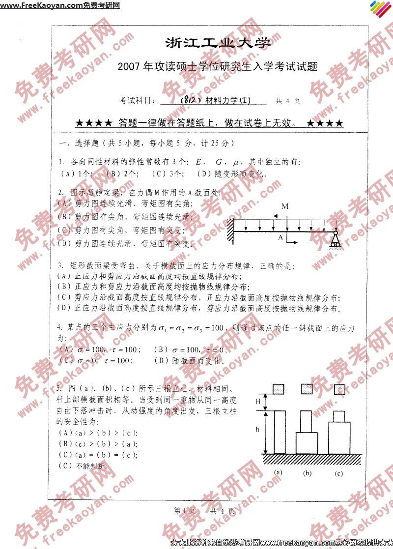 专业课考研经验 本站小编 FreeKaoyan 2018-01-23浙江工业大学2007年考研真题-工程材料