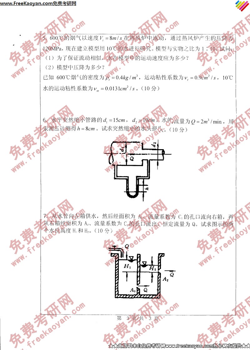 相关话题/浙江工业大学 考研真题 流体力学