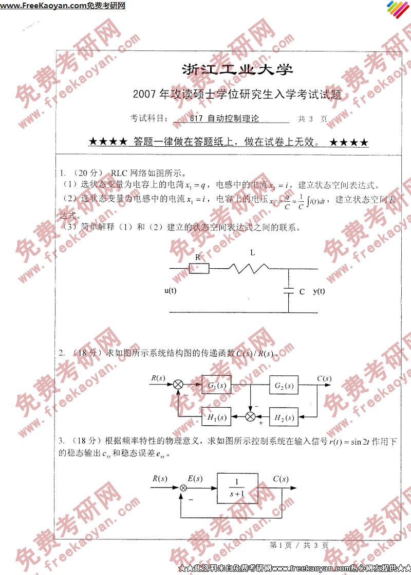 专业课考研经验 本站小编 FreeKaoyan 2018-01-23浙江工业大学2007年考研真题-通信原理