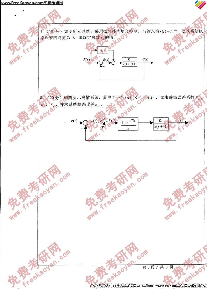 浙江工业大学2007年考研真题-自动控制原理(3)