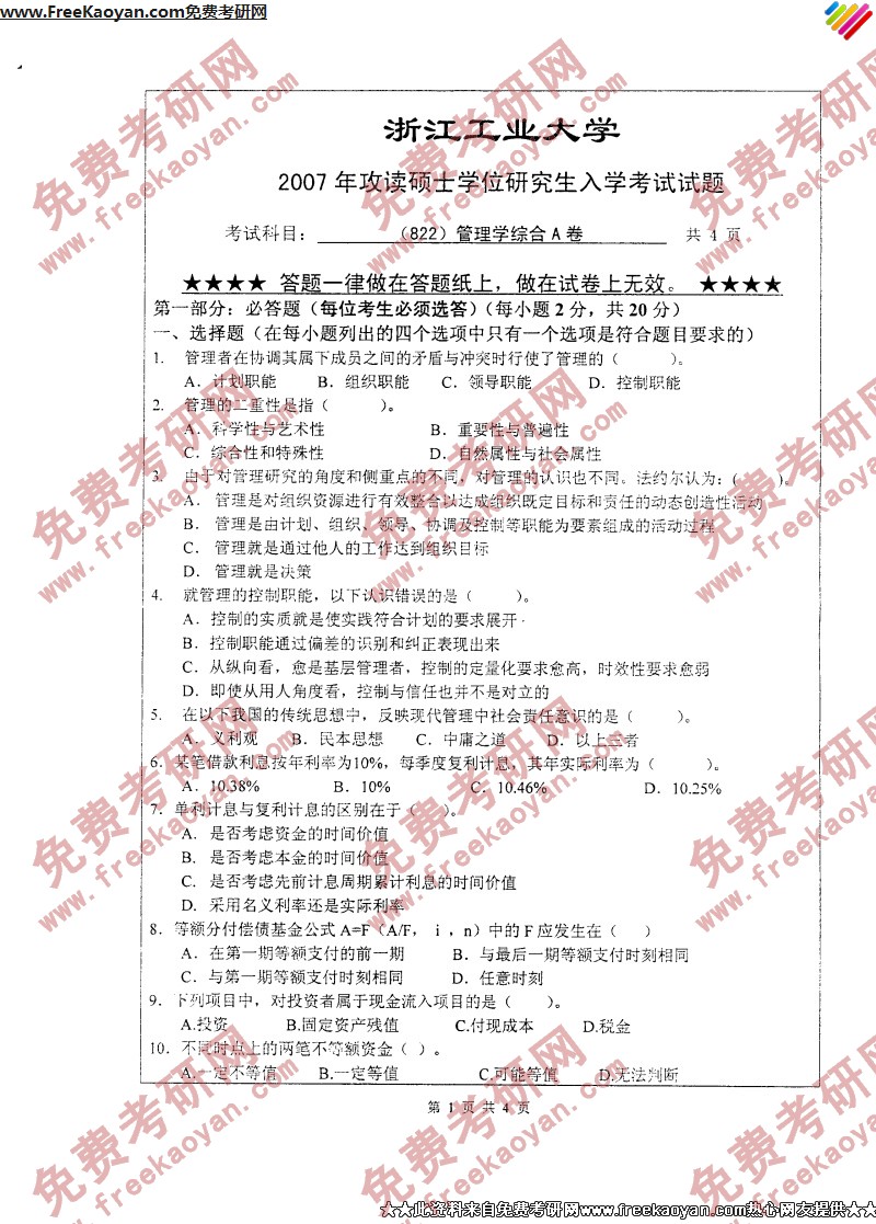 相关话题/考研真题 浙江工业大学 综合 管理学
