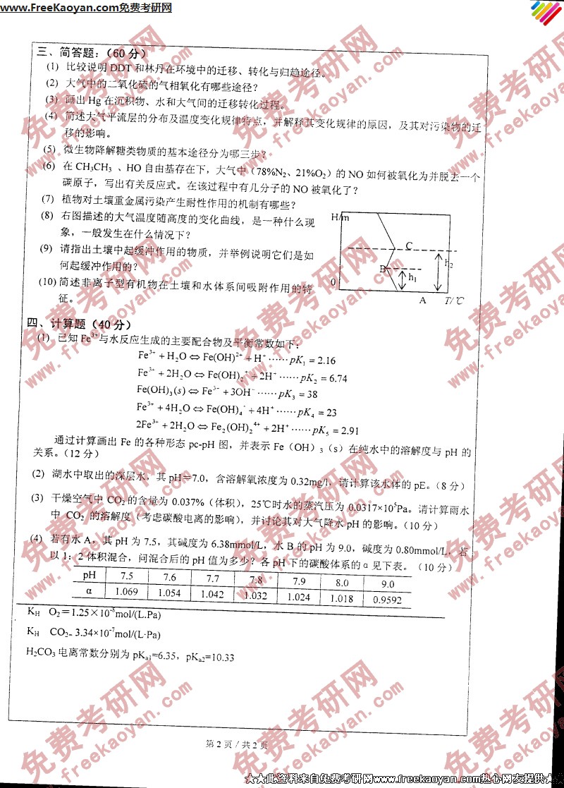 浙江工业大学2007年考研真题-环境化学(2)