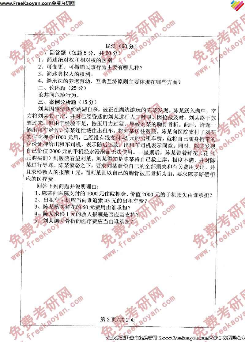 相关话题/考研真题 浙江工业大学 专业基础 法学