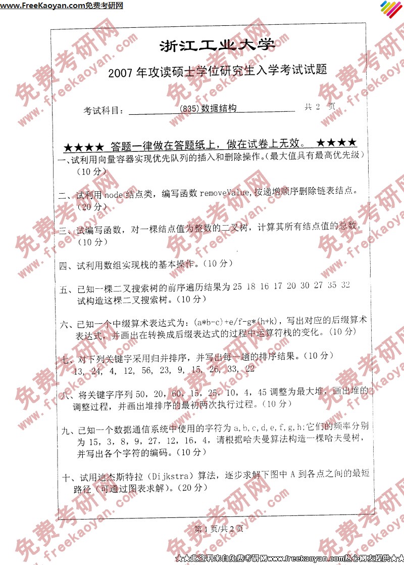 专业课考研经验 本站小编 FreeKaoyan 2018-01-23浙江工业大学2007年考研真题-程序设计