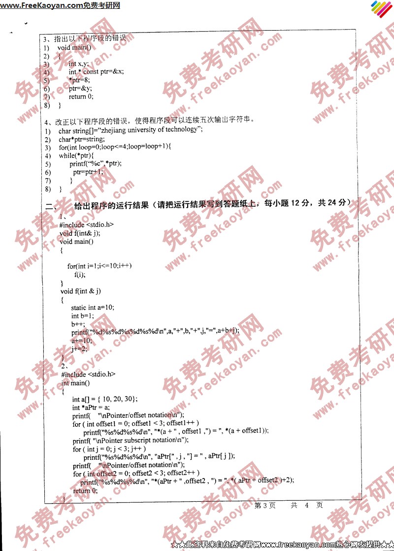 浙江工业大学2007年考研真题-离散数学与程序设计(3)