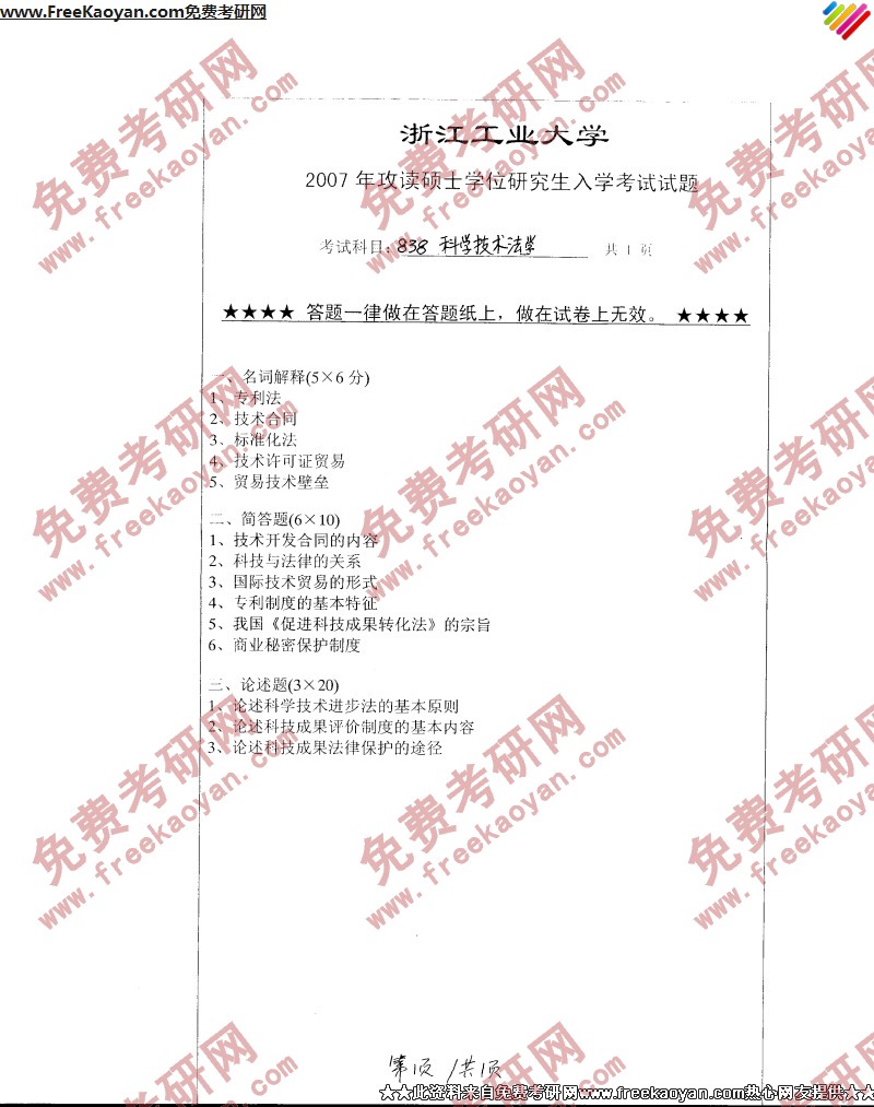相关话题/考研真题 浙江工业大学 法学 科学技术