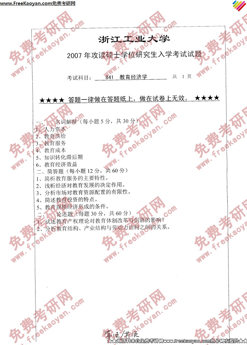 专业课考研经验 本站小编 FreeKaoyan 2018-01-23浙江工业大学2007年考研真题-专业设计