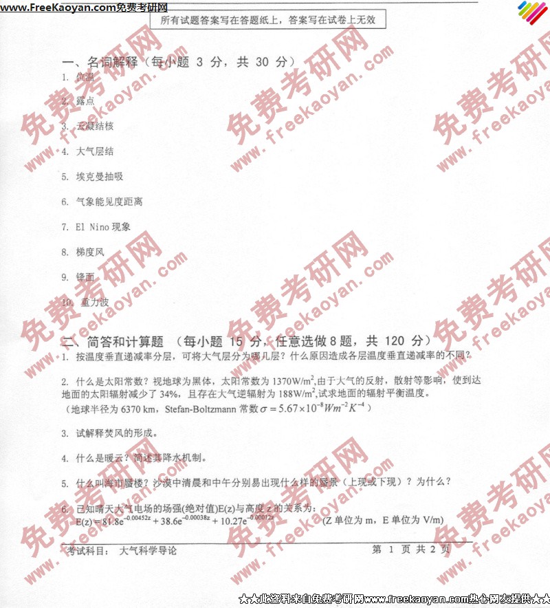 相关话题/大气 考研真题 技术 科技 科学