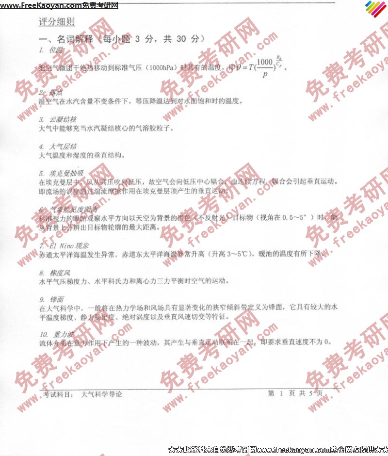 中国科技技术大学2007年考研真题-大气科学导论及答案(3)