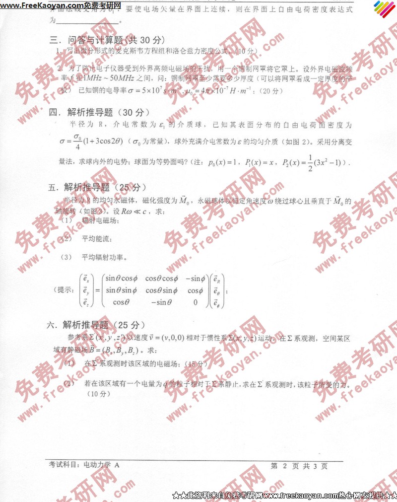中国科技技术大学2007年考研真题-电动力学A及答案(2)