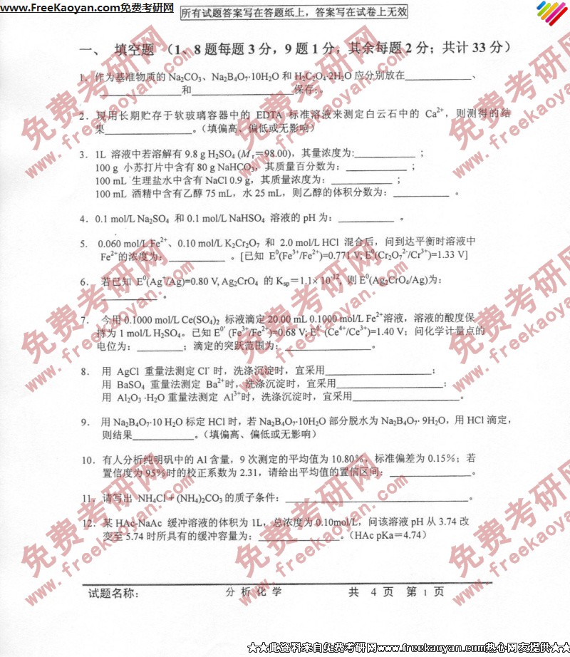 相关话题/考研真题 技术 科技 分析化学 答案