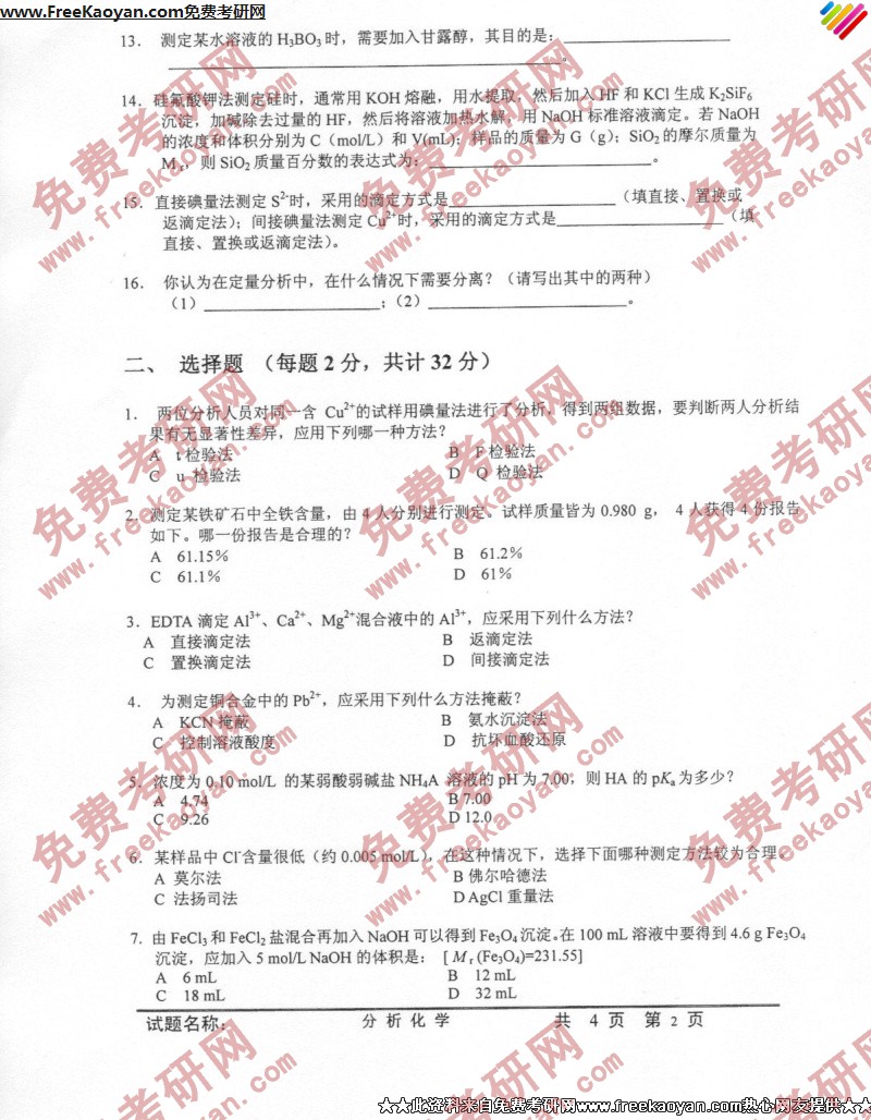中国科技技术大学2007年考研真题-分析化学及答案(2)