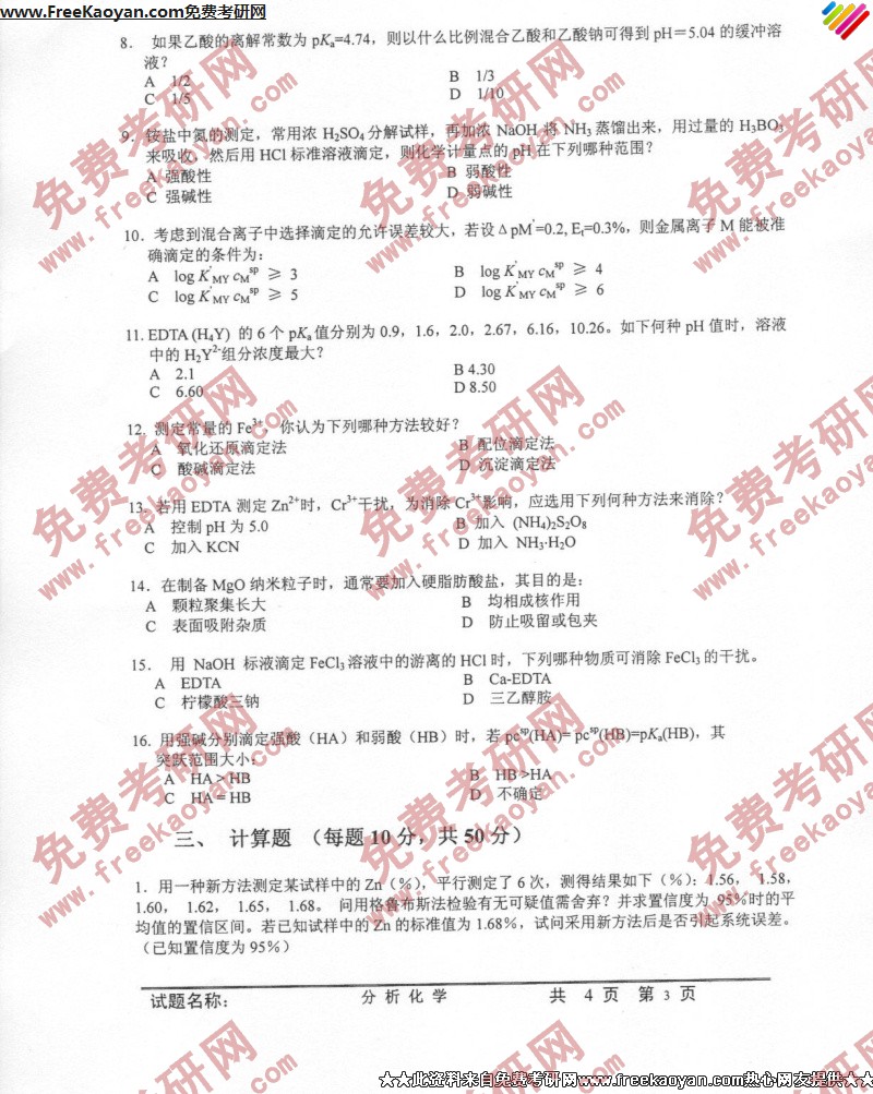 中国科技技术大学2007年考研真题-分析化学及答案(3)