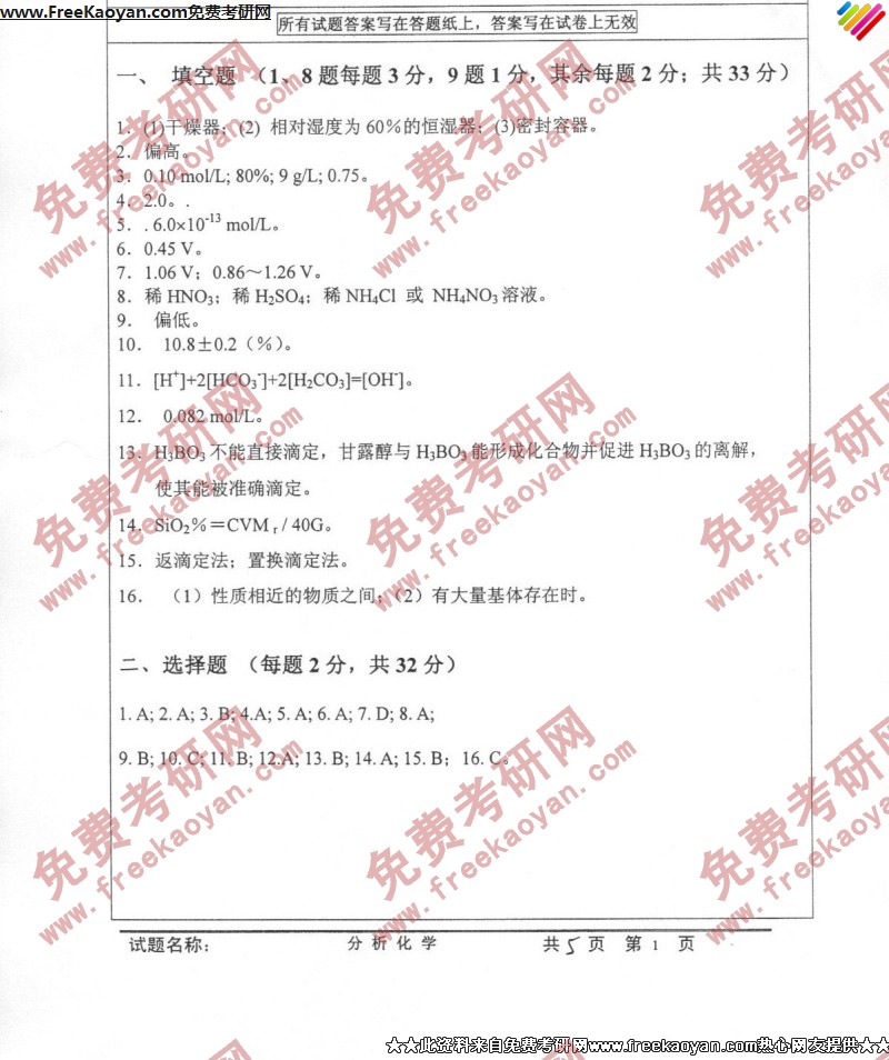 相关话题/考研真题 技术 科技 分析化学 答案