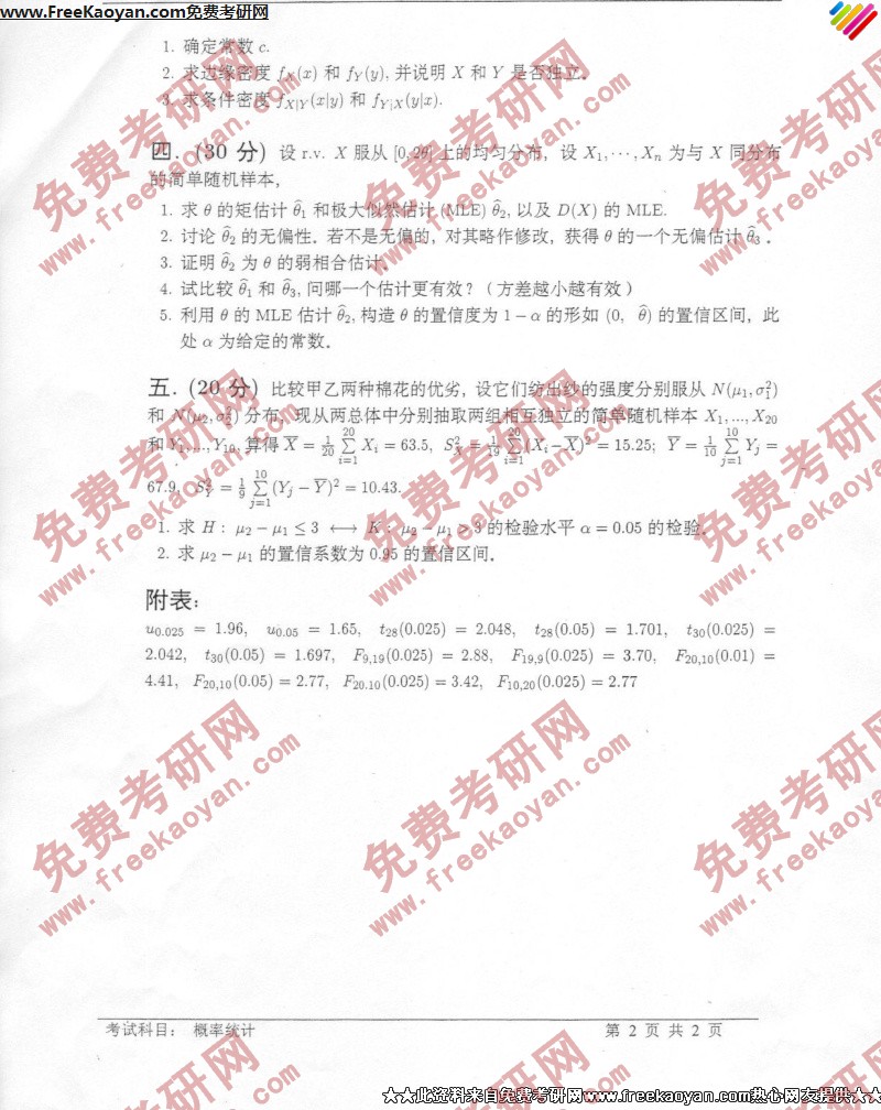 中国科技技术大学2007年考研真题-概率统计及答案(2)