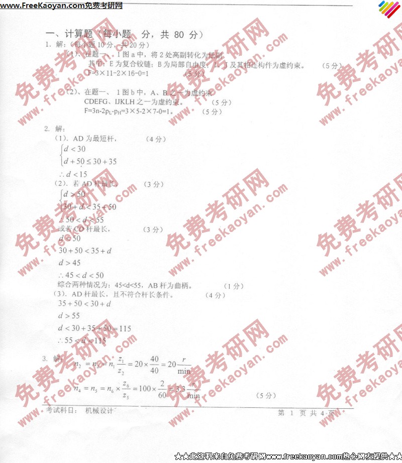 相关话题/考研真题 技术 科技 机械设计 答案