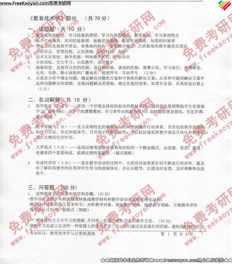 中国科技技术大学2007年考研真题-教育技术学与计算机基础及答案(7)