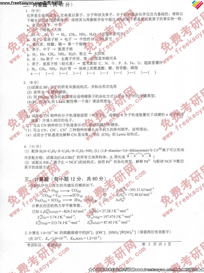 中国科技技术大学2007年考研真题-普通化学及答案(2)