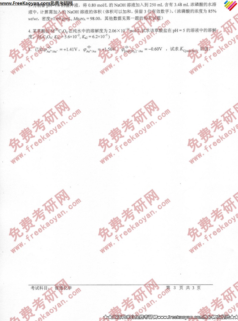 中国科技技术大学2007年考研真题-普通化学及答案(3)