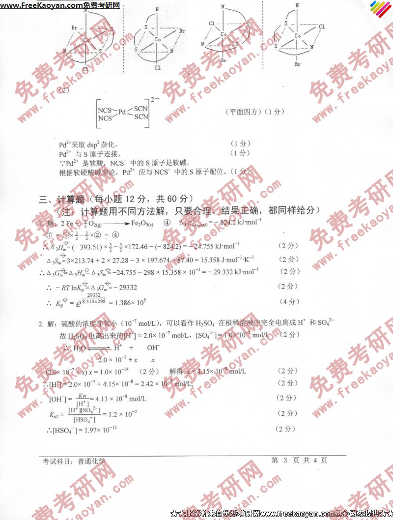 相关话题/考研真题 技术 科技 普通化学 答案